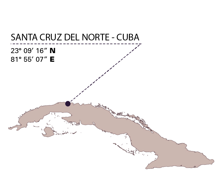 TIPOLOGIADOP Cuba Ron ZONA PRODUTTIVASanta Cruz del Norte MATERIA PRIMA100% canna da zucchero Cubana. Si utilizza la melassa, coltivata e lavorata a Cuba DISTILLAZIONEColonna continua, di fabbricazione esclusiva e brevettata COLOREAmbrato scuro con riflessi rossastri PROFUMOAl naso richiama la canna da zucchero, con note di rovere, frutta secca e vaniglia. Sul finale emerge una leggera nota di legno. SAPOREAl palato l’ingresso è secco, con il legno in evidenza che lascia spazio a note di cacao e cannella. Il finale è lungo e pieno. INVECCHIAMENTOL’invecchiamento in botti di rovere bianco americano avviene in 3 fasi: la prima a gradazione piena 74%/76%, la seconda tra il 40% e il 60% di alcol, la terza dopo i blend effettuati dal Primer Maestro Ronero