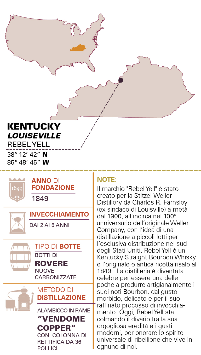ZONA PRODUTTIVABardstown - Kentucky MATERIA PRIMAMais (68%), frumento (20%), malto d’orzo (12%), lievito , acqua DISTILLAZIONEMais, frumento, malto d’orzo ed acqua vengono riscaldati e lasciati raffreddare. Viene aggiunto il lievito ed inizia la fermentazione Il liquido ottenuto viene distillato finché raggiunge gli 80% alc./vol. e successivamente diluito con acqua in modo da arrivare a 62,5%alc./ vol. COLOREAmbra PROFUMOAl naso note di miele, zucchero di canna, rovere carbonizzato e mais, con sentori di mentolo e floreali SAPOREAl palato è leggermente dolce e oleoso con note di vaniglia, caramello, rovere tostato, cannella e pepe bianco con sentori di mais e arancia. Il finale è mediamente persistente con note di quercia, mais, miele, vaniglia e pepe con la freschezza della scorza d’arancia e il calore del caramello. INVECCHIAMENTOMinimo 4 anni in botti di quercia americana