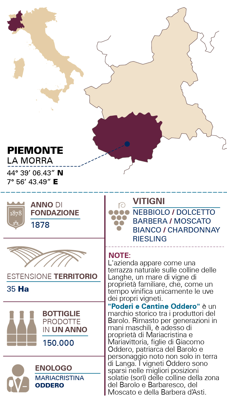 ZONA PRODUTTIVALa Morra ( Monleale Timorasso vinificazione dei vini presso la cantina Oddero Poderi e Cantine a La Morra. Produzione dei due Vermouth c/o la distilleria Il Reale SRL Chieri (TO). MATERIA PRIMAVino bianco da uva Nebbiolo, acqua, zucchero, infuso ed estratto naturale di erbe e spezie, alcol di origine agricola DISTILLAZIONEInfusione del vino Nebbiolo insieme alle botaniche selezionate per permettere il graduale e delicato assorbimento degli aromi e dei profumi delle erbe e delle spezie scelte nella nostra ricetta, macerazione con aggiunta di zucchero e alcol, successiva filtrazione e imbottigliamento. COLORERosso amaranto PROFUMORabarbaro, cannella e bacche rosse, fragola, bocciolo di rosa ABBINAMENTIDa bersi puro, liscio ad una temperatura di 4°/5° oppure con ghiaccio ed una scorzetta di kumquat per l’aperitivo. Ottimo in abbinamento ai formaggi e soprattutto a fine pasto con i dolci ed in particolare con il cioccolato fondente SAPOREPieno e strutturato NOTEL'azienda appare come una terrazza naturale sulle colline delle Langhe, un mare di vigne di proprietà familiare che, come un tempo, vinifica unicamente le uve dei propri vigneti .."Poderi e Cantine Oddero" è un marchio storico tra i produttori del Barolo. Rimasto per generazioni in mani maschili, è adesso di proprietà di Mariacristina e Mariavittoria figlie di Giacomo Oddero, patriarca del Barolo e personaggio noto non solo in terra di Langa. I vigneti Oddero sono sparsi nelle migliori posizioni solatie (sorì) delle colline della zona del Barolo e Barbaresco, del Moscato e della Barbera d’Asti.