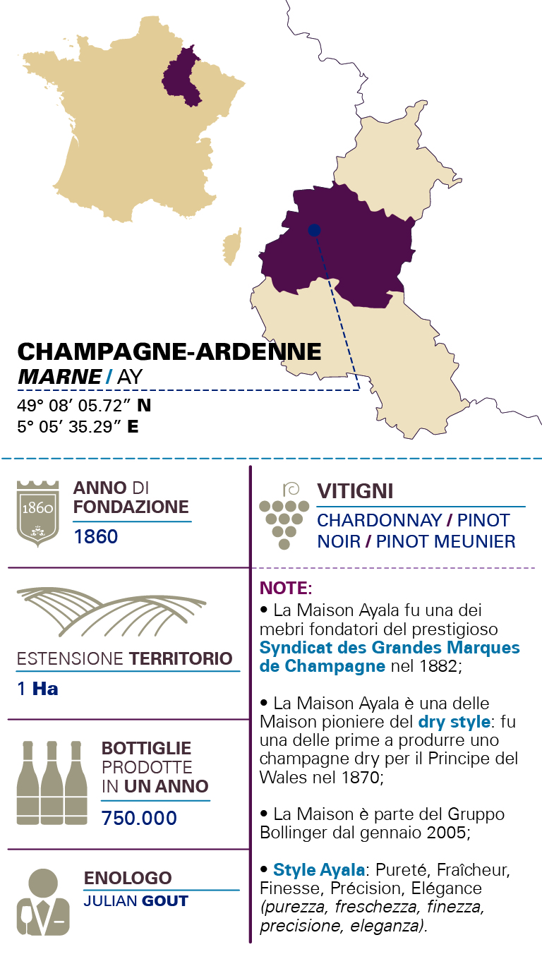 • ZONA PRODUTTIVA70 Cru provenienti dagli 8 grandi Terroirs di Champagne: Côte des Blancs, Montagne de Reims, Vallée de la Marne, Massif de Saint-Thierry, Montgueux, Sézannais, Vitryat, Côte des Bar.