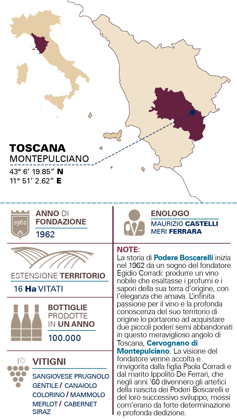TIPOLOGIADOC Vin Santo di Montepulciano ZONA PRODUTTIVALocalità Cervognano. VITIGNOSangiovese e altre uve a bacca rossa VINIFICAZIONEIl succo ottenuto dalla pressatura di uve Sangiovese principalmente e altre uve complementari a bacca rossa , appassite naturalmente, viene posto a fermentare in caratelli di legnami differenti ,e di capacità variabile tra i 20 ed i 50 litri, sigillati con ceralacca. Il mosto, grazie alla presenza di lieviti selezionati di produzione in produzione,fermenta in ambiente privo di ossigeno. La prima apertura dei caratelli avviene dopo circa 4/5 anni. Nella stagionatura ,secondo la tradizione , sono importanti gli sbalzi termici.